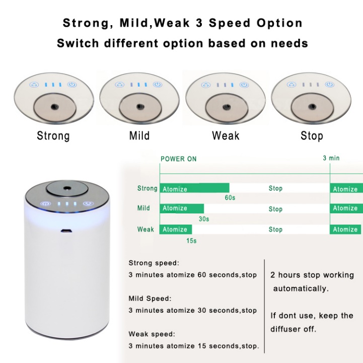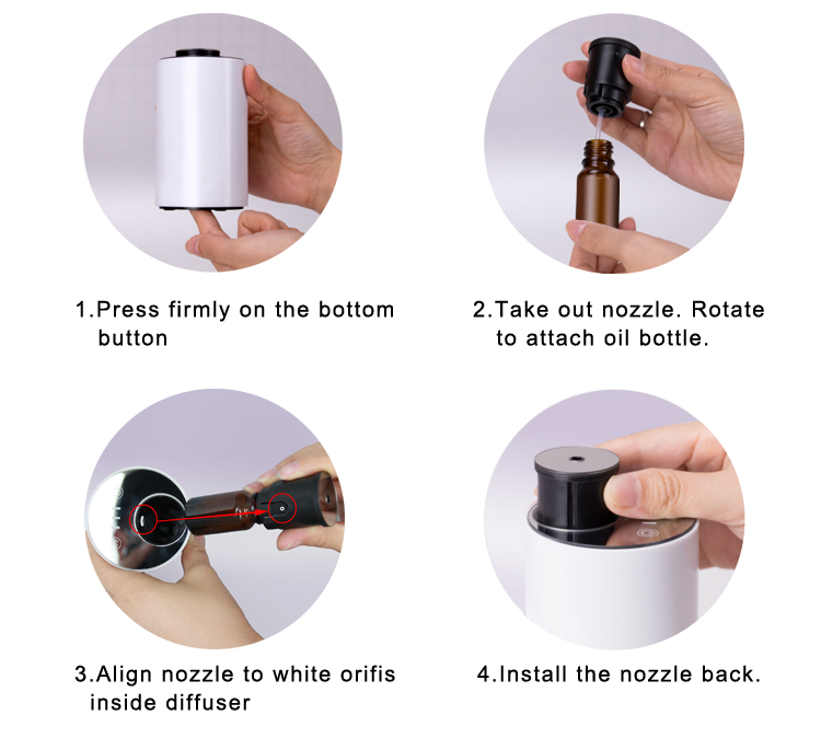 Dễ dàng và thân thiện với người dùng: Được xây dựng tinh tế và dễ sử dụng. Đổ tinh dầu nguyên chất đầy bộ khuếch tán sau đó xoay thiết bị của bạn theo hướng bạn muốn phun và nhấn nút nguồn để máy hoạt động