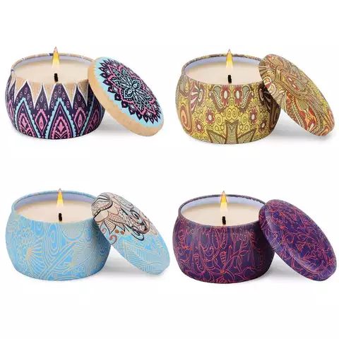 Tên sản phẩm: Nến thơm, 120g, mẫu hộp thiếc hoa văn, hương Tinh dầu Quế nguyên chất.