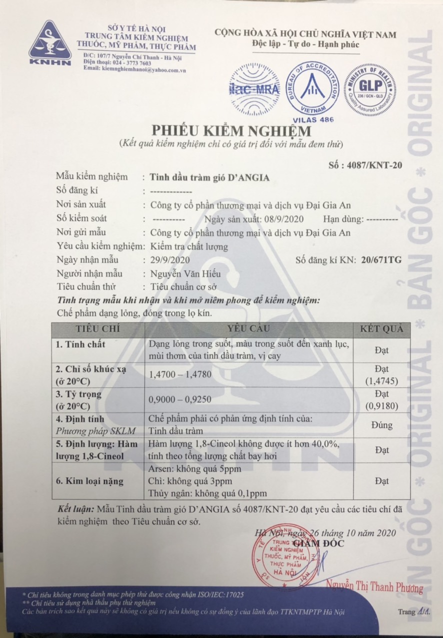 Các thành phần chính của TINH DẦU TRÀM là: α-pinen, β-pinen, Sabinene, Myrcene, α-Phellandrene, α-Terpinene, Limonene, 1,8-cineole, gamma-Terpinene, p-Cymene, Terpinolene, Linalool, Terpinen -4-ol và α-Terpineol.